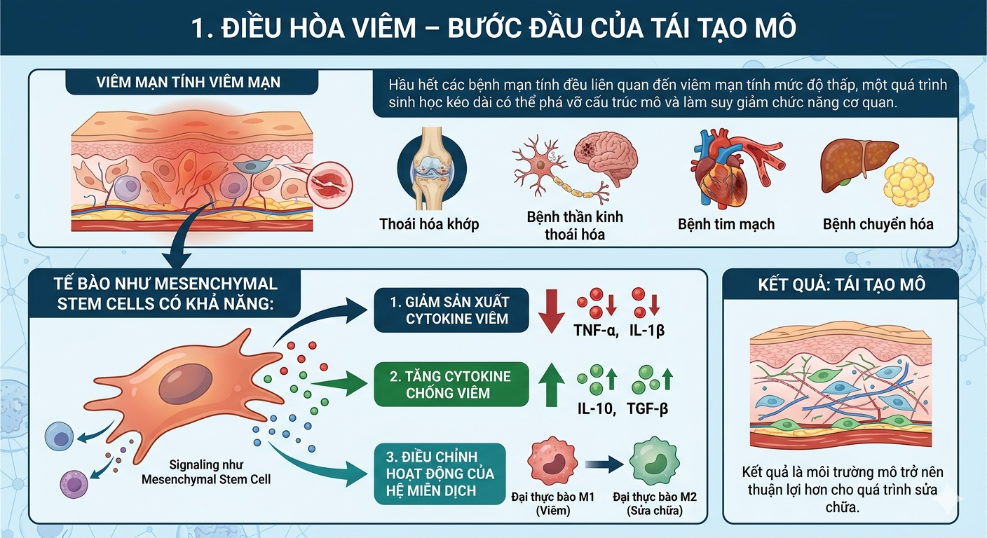 1. Điều hòa viêm – bước đầu của tái tạo mô