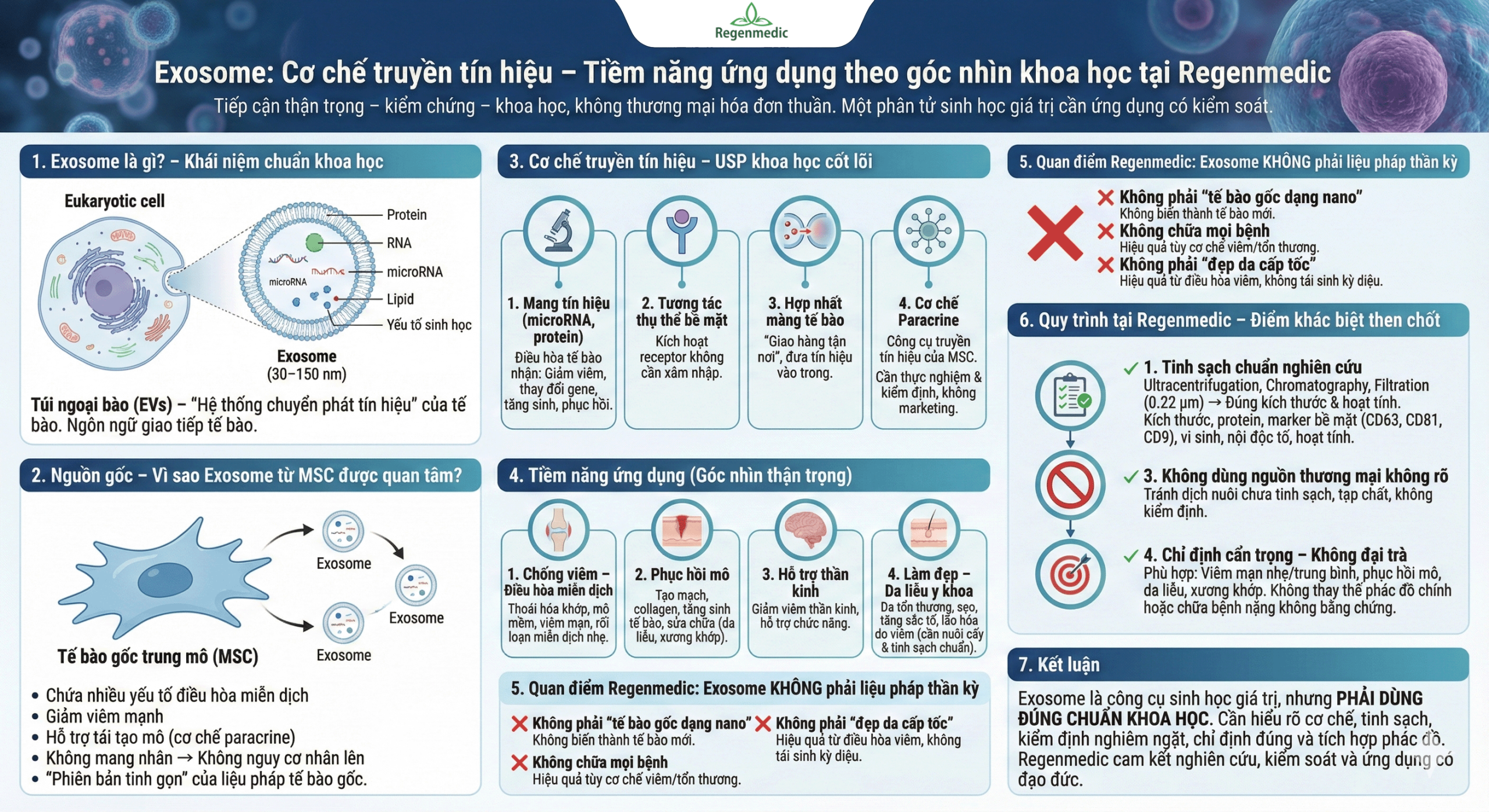 Do đó, ứng dụng exosome cần dựa trên kinh nghiệm thực nghiệm – kiểm định – dữ liệu nghiên cứu, không dựa vào tuyên bố marketing.