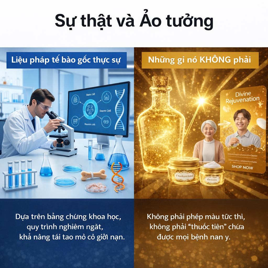 👉 Khi được ứng dụng đúng khoa học & đúng đạo đức, liệu pháp tế bào gốc có thể trở thành mảnh ghép giá trị trong chăm sóc sức khỏe cá nhân hóa, đặc biệt ở bệnh mạn & người cao tuổi.