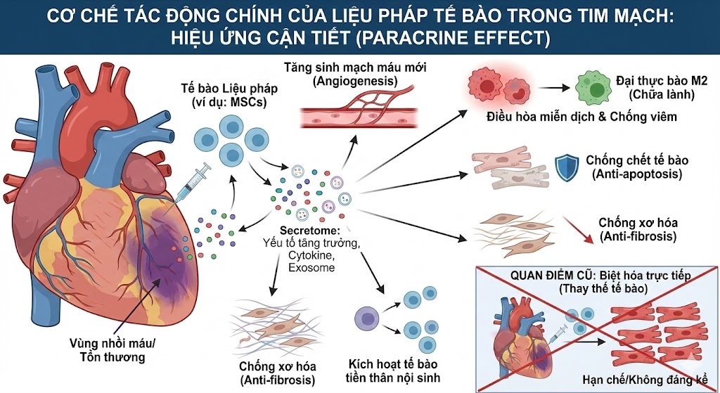 Hiệu quả của liệu pháp tế bào đến chủ yếu từ các yếu tố cận tiết, không phải từ việc tế bào “biến thành” cơ tim mới.