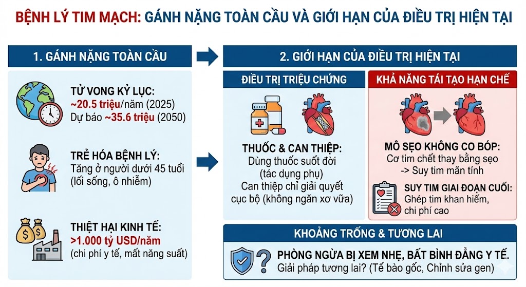 1. Bệnh lý tim mạch – gánh nặng toàn cầu và giới hạn của điều trị hiện tại