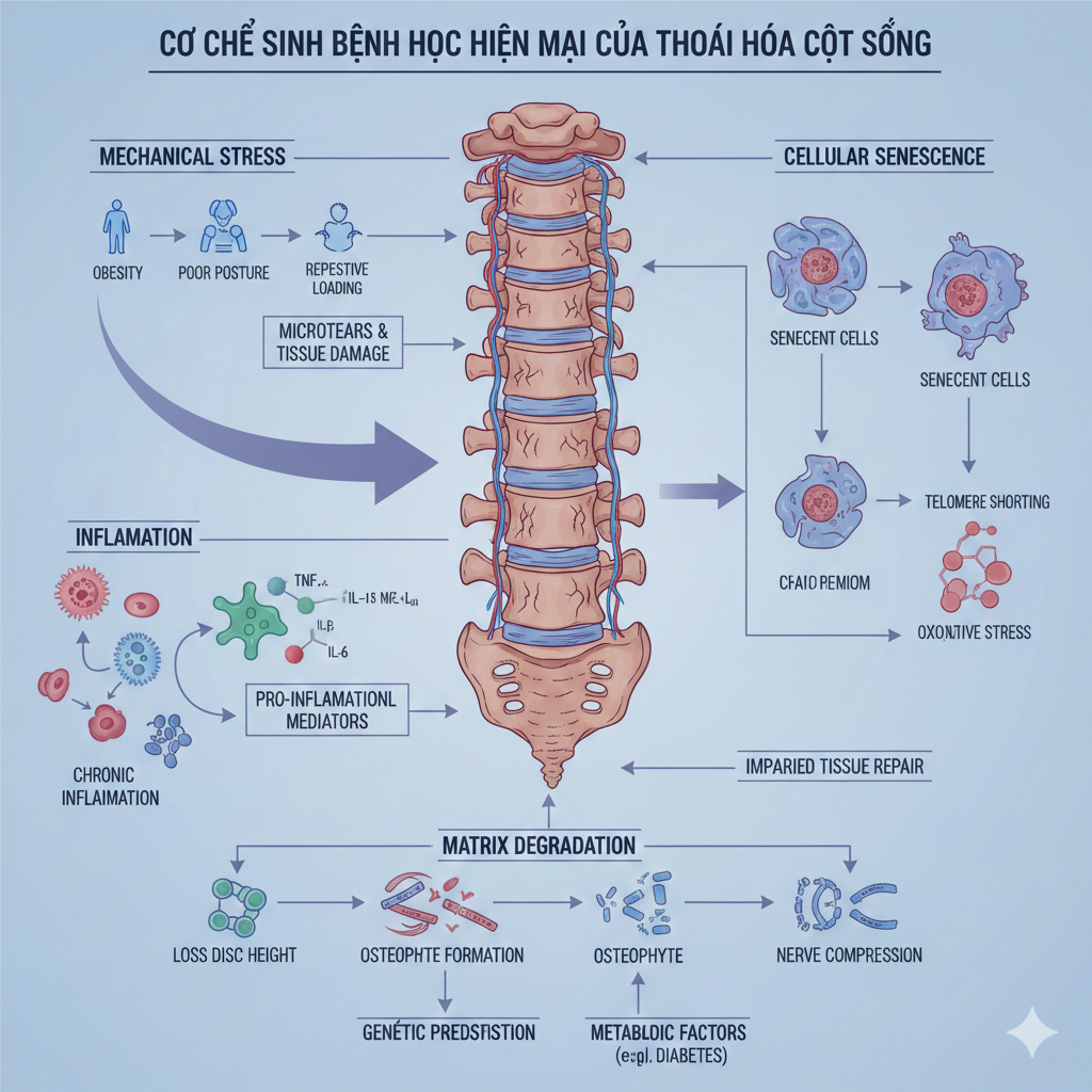 2. Cơ chế sinh bệnh học hiện đại của thoái hóa cột sống